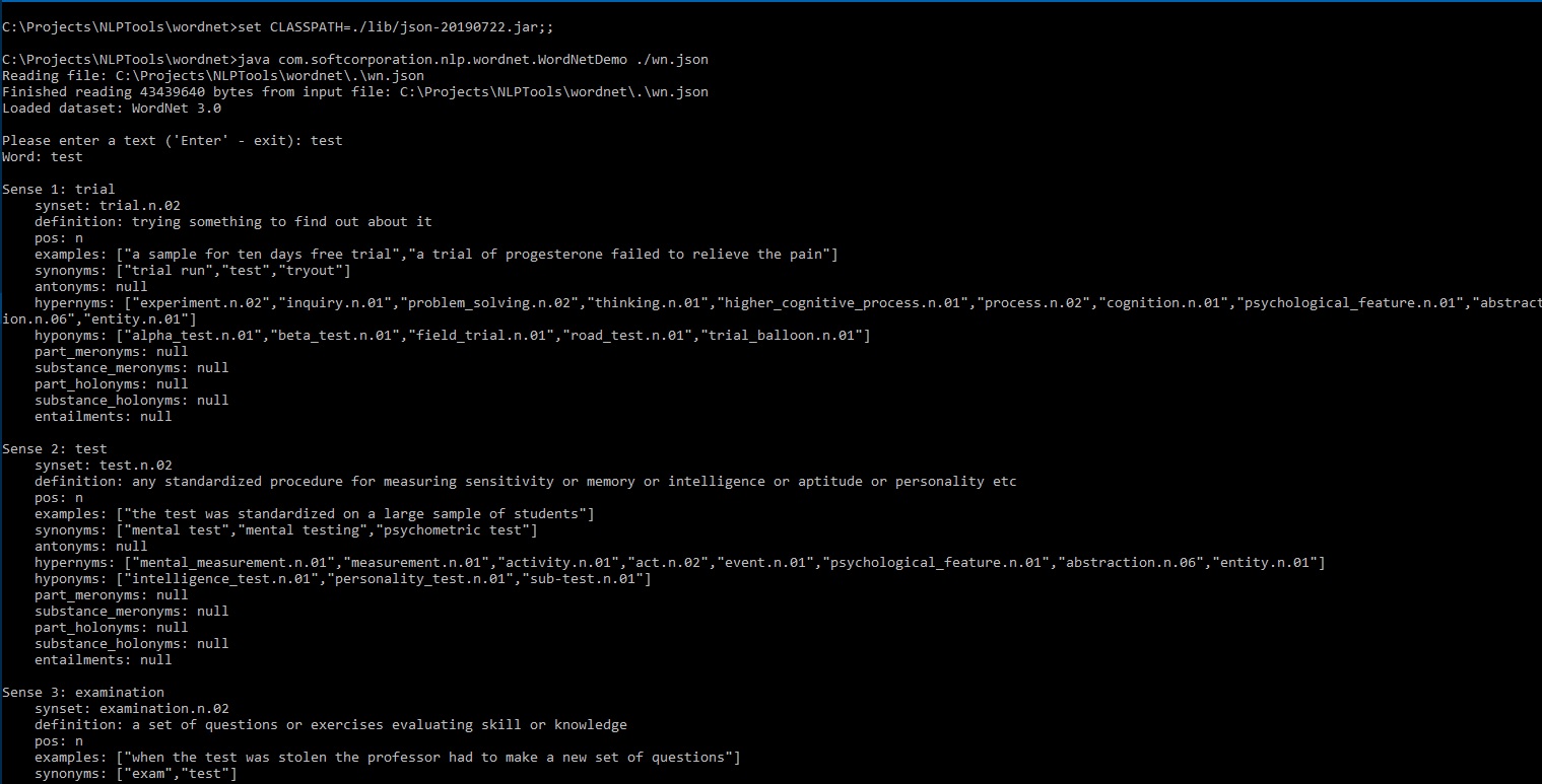 The home page for the WordNet JSON project can be found on the SoftCorporation LLC.